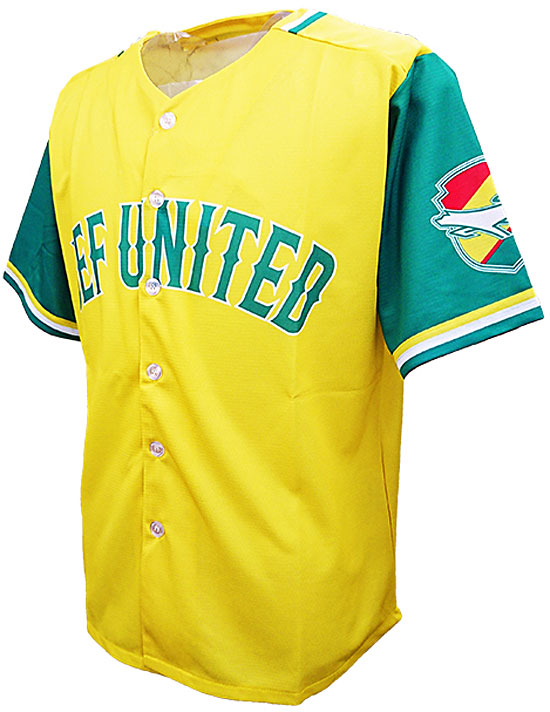 チームカラーのイエローとグリーンが色鮮やかなシャツは、ユニフォームのデザインに近い印象を受ける。