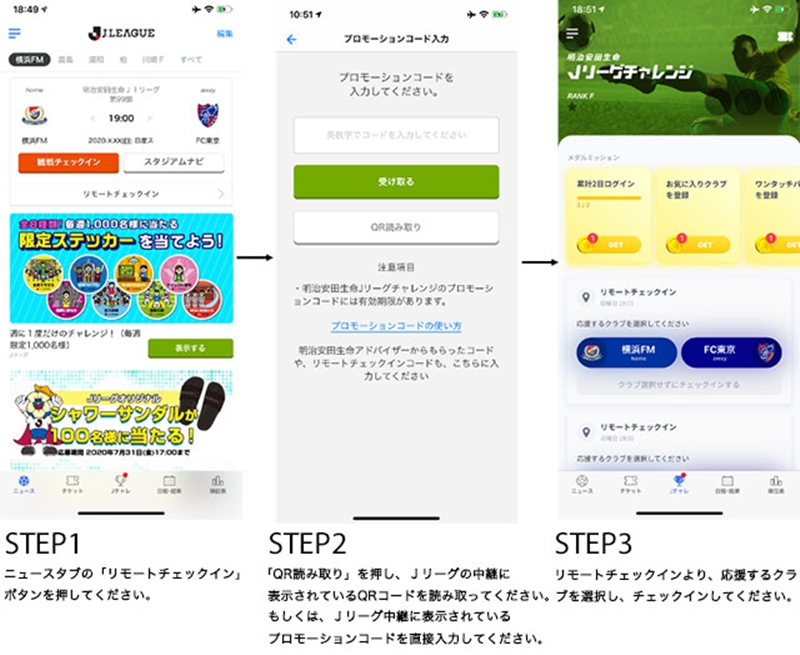 そんなJリーグ公式アプリのチェックイン機能に、新たに「リモートチェックイン」が追加されたことがJリーグから発表された。