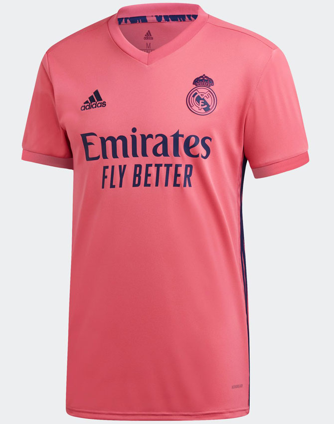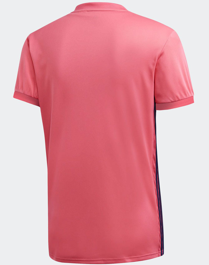 アウェイユニフォームは大胆なピンク(メーカーの色名はスプリングピンク)に。「選手とサポーターに誇りと自信をもたらす大胆なカラーリング」とサプライヤーのadidasは説明する。