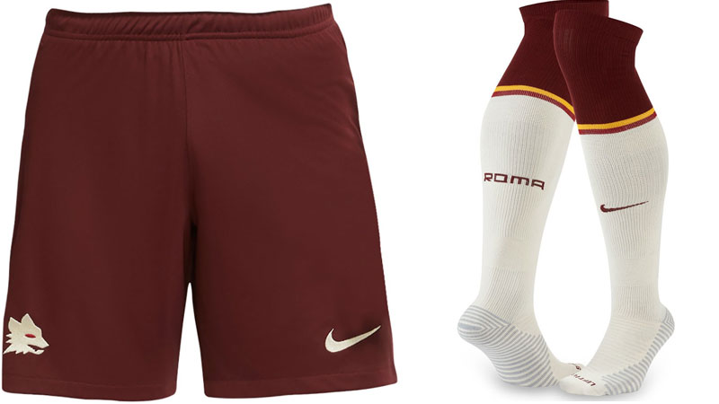 ベージュを基調に、襟にはジャッロロッソ(黄と赤)のアクセントカラー。このスタイルは80年代初頭のアウェイキットに見られた。また、今回のエンブレムは当時と同様に狼を模ったデザインを使う。