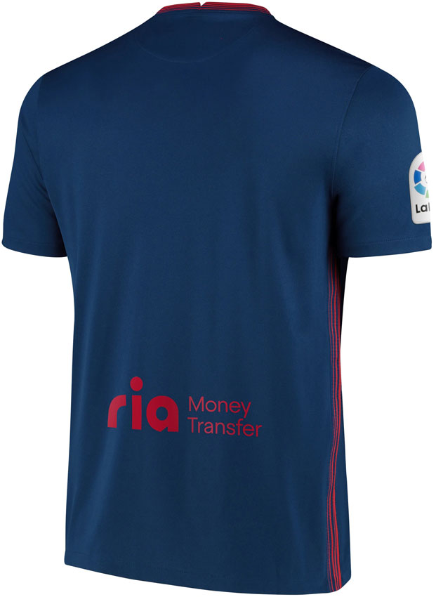 新アウェイユニフォームはダークネイビーとレッドのコンビネーションに。襟の内側には武器のトライデント(三叉槍)をプリント。これはマドリードにある「ネプチューンの噴水」に存在する“海神ネプチューンの像”が手にしている武器だ。
