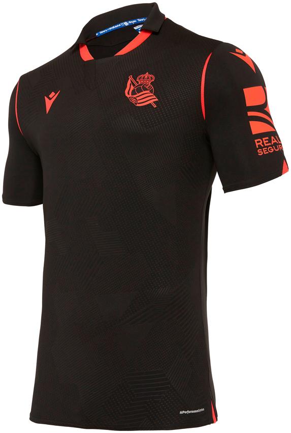 新アウェイキットはブラックを基調にレッドの差し色が鮮やかなデザイン。シャツ全体に特徴的なグラフィックを施している。