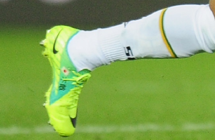 よく見ると、ネイマールのスパイクには日本国旗と漢字が刻まれている。