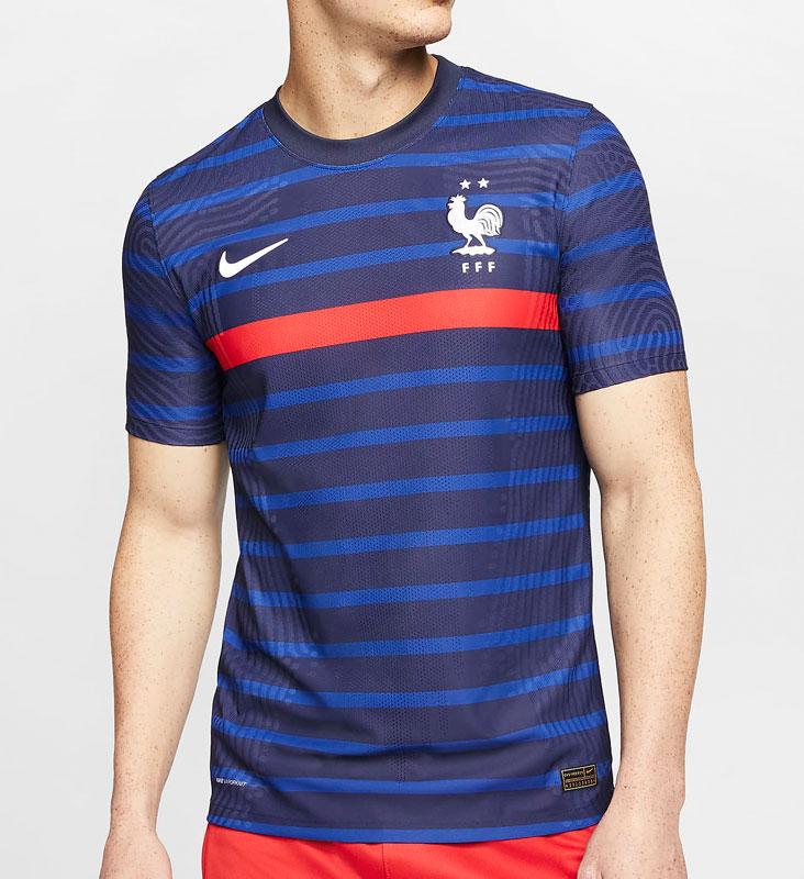 レッドのストライプは、自国開催だった1998年のW杯優勝チームが着たユニフォームに着想を得たもの。象徴的なデザインを取り入れたキットでチームは欧州制覇を目指す。