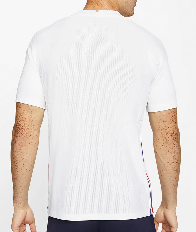 新アウェイキットはシンプルなデザインが登場。定番のホワイトを基調とし、両脇部分にフランス国旗色のストライプを配する。