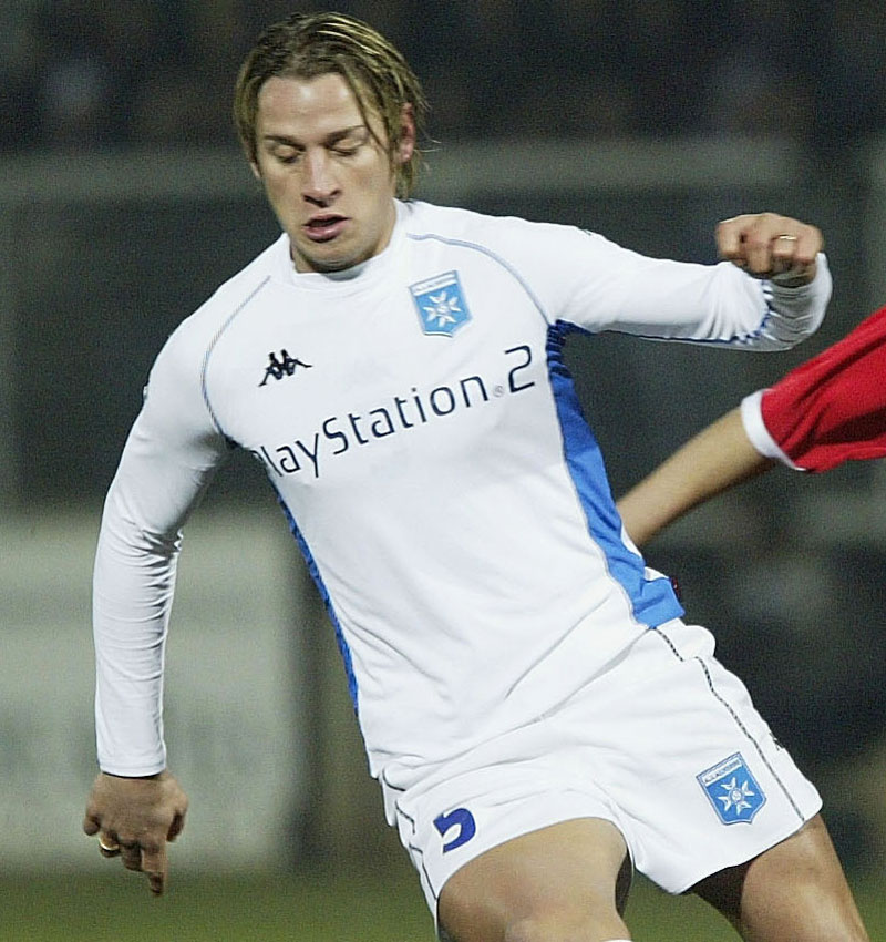 「Playstation」のスポンサーロゴが有名なオセール。近年は2部に沈んでいるが、当時はピチユニを着てUEFAチャンピオンズリーグを戦っている。