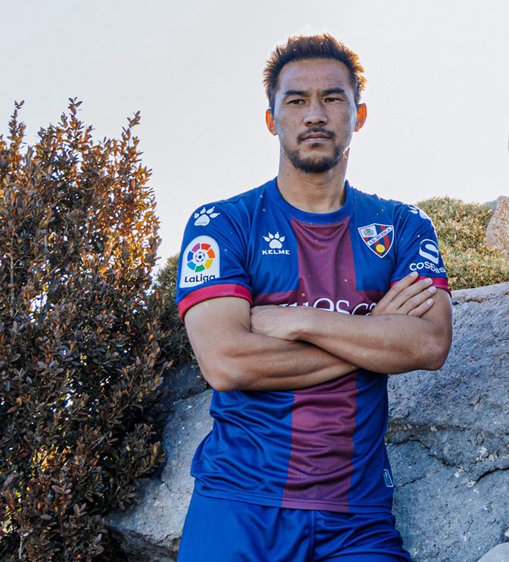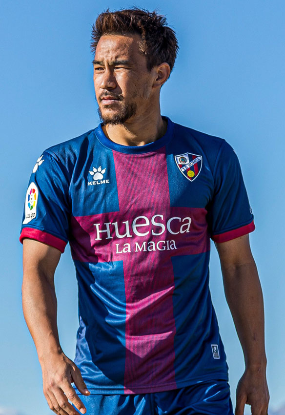 岡崎慎司が所属するウエスカ。伝統的なブルーとレッドの配色に、ウエスカ県の旗に使われている「赤い十字」を組み込んだデザインに力強さを感じる。