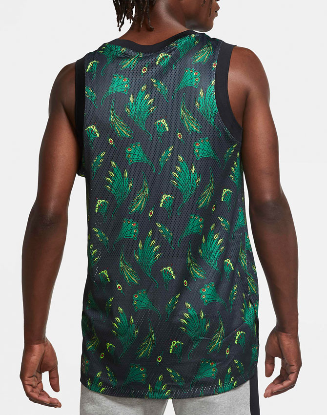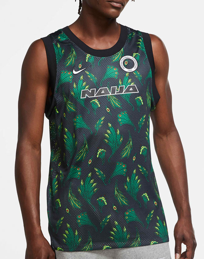 サッカーとバスケットボールを組み合せたスリーブレスジャージ。「スーパーイーグルス」の愛称を持つナイジェリア代表を称え、シャツ全体に鷲の羽を描く。