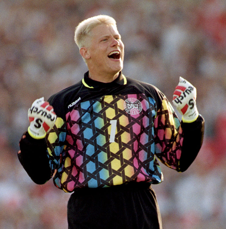 ユーゴスラビアの代替出場ながら大躍進し、見事に優勝を飾った1996年の欧州選手権(EURO92)で使用したGKユニフォーム。とにかく色使いが派手で面白い一着だ。