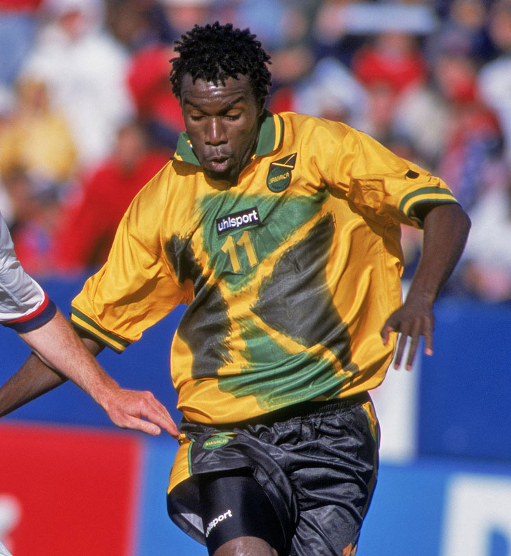 90年代後半から数年間、ジャマイカ代表のユニフォームは攻めたデザインが多かった。2001年モデルは国旗を独特のタッチで大胆に描き、アート的な雰囲気を醸し出す。