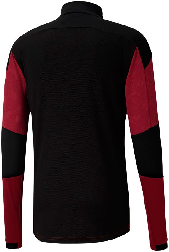 トレーニング時などに選手が着用する1/4ジップのトレーニングトップ。レッドとブラックのカラー配置が絶妙な一着。