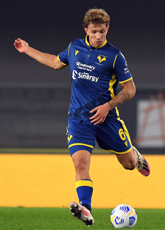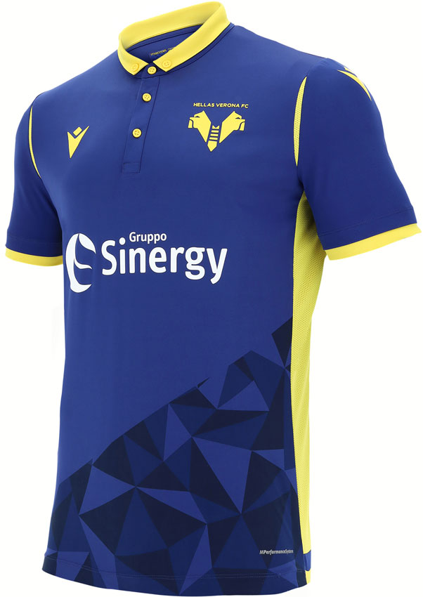 ホームユニフォームは幾何学模様のグラフィックが印象的なデザイン。ブルーを基調にイエローの差し色という伝統の配色を継承となった。この2色はホームタウンであるヴェローナの旗・紋章に使われている。