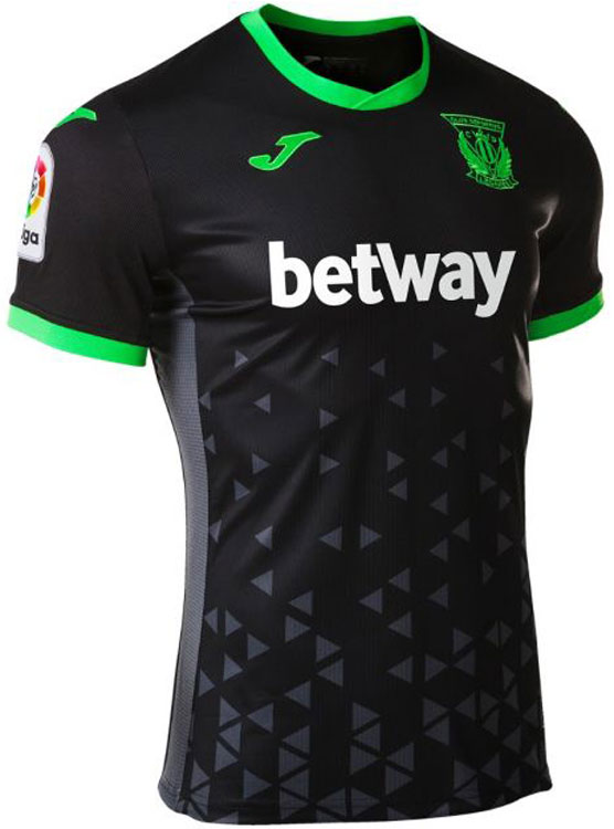 アウェイユニフォームはブラックをベースに、発色の良いグリーンを組み合せる。前面に散りばめた三角形のグラフィックが印象的なデザインだ。エンブレムの色もグリーン一色に変更となった。