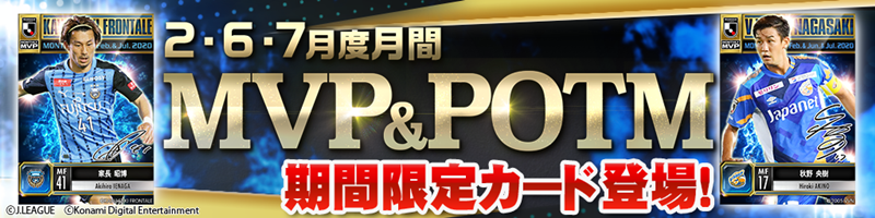 29日、そのJクラに、2・6・7月度の「明治安田生命Jリーグ KONAMI月間MVP」に選ばれた2人の選手を含む、40人の選手たちが期間限定カード、MVP&POTM(Players Of The Month)カードとして登場することが発表された。
