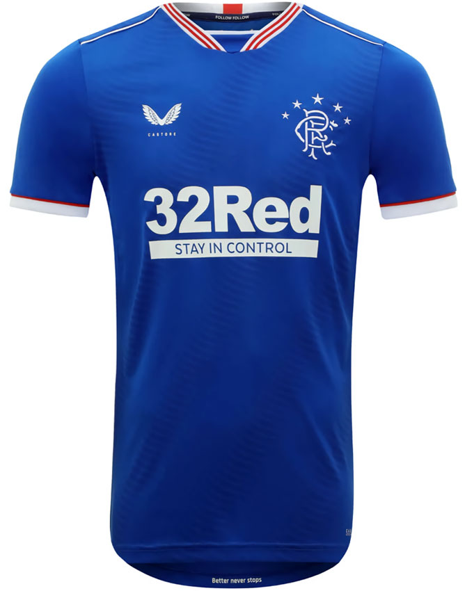 わりと頻繁にサプライヤーが変わるレンジャーズ。昨季でHummelとの契約が終了し、今季からイギリスの高級スポーツブランドCastoreのウェアを着用する。