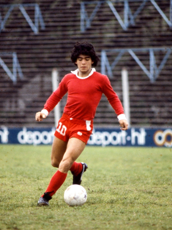 マラドーナは1969年、アルヘンチノス・ジュニアーズに入団。彼の加入した、60年生まれの子どもたちを集めたチーム、セボジータスは無敵の強さを誇った。だが、未来のスーパースターを有名にしたのは、ボールボーイを務めた1軍の試合でハーフタイムに行っていたリフティング。その類まれなボールコントロールはファンの間で話題となり、全国的な新聞やテレビ番組でも取り上げられた。