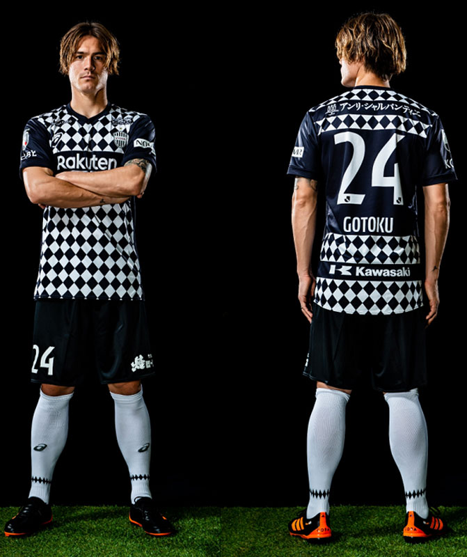 アウェイユニフォームはかつてのチームカラーであり、2020年にリリースした25周年記念モデルと同じブラック&ホワイトを採用。