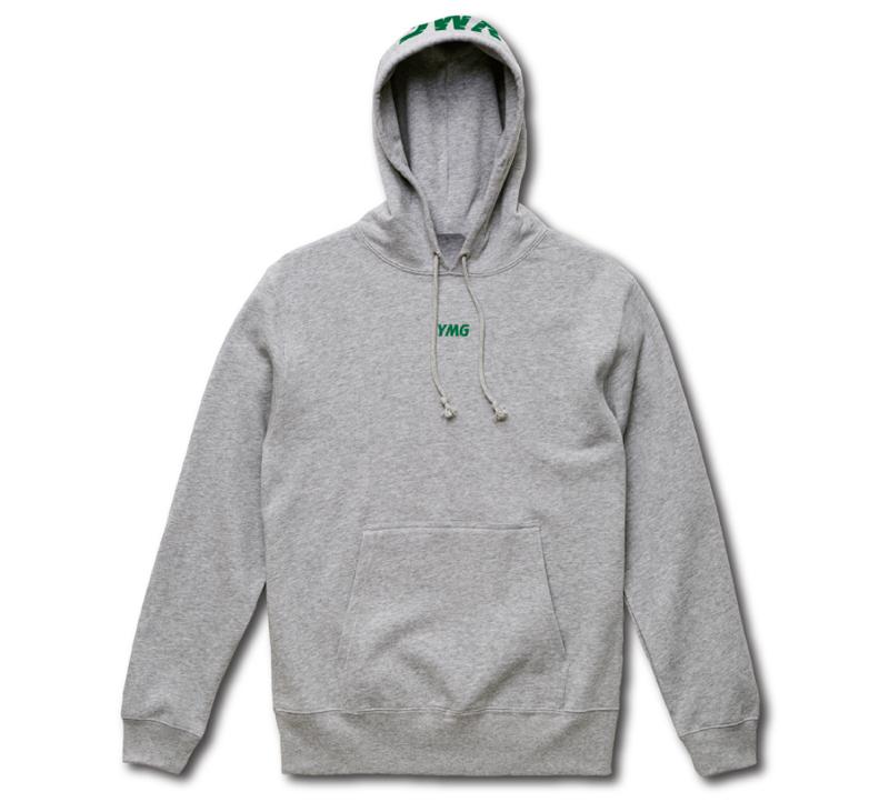 オールシーズン使用できる裏毛素材のパーカー。胸部分に“YMG”を刺繍し、アウターを着用した際もさりげなくロゴを露出するデザイン。フード部分にもYMGをプリントする。グリーン、ホワイト、ブラック、グレーの4色展開。