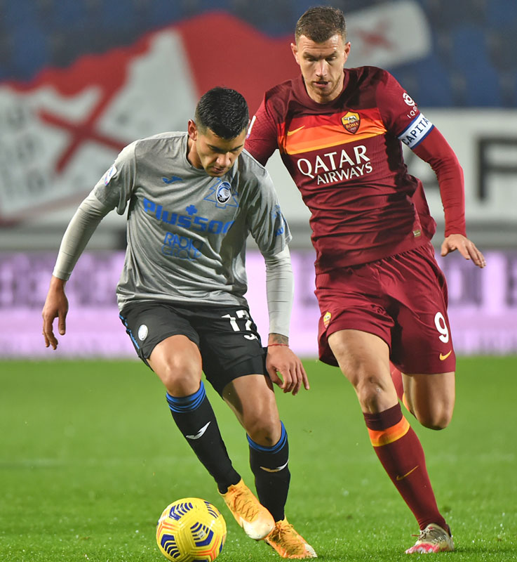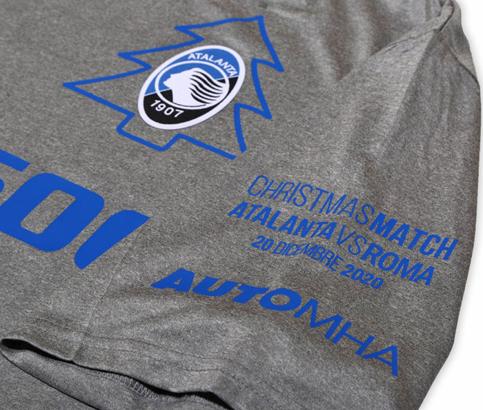 エンブレムをクリスマスツリーで囲む“お約束”のスタイル。背面には“XMAS MATCH 2020”を、左袖にはローマ戦のマッチデイをプリントする。