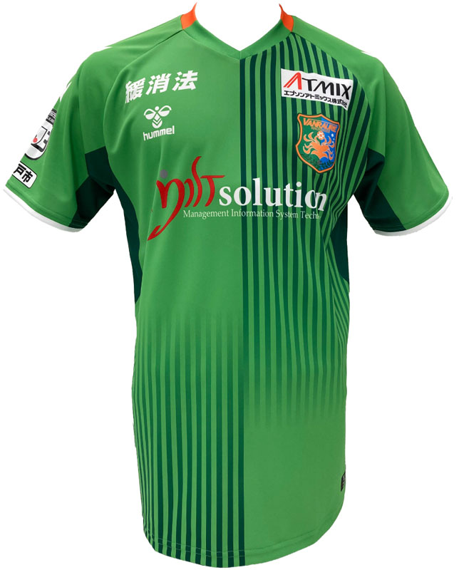 Hummel製の第一弾となる2021モデル。ホームキットはチームカラーのグリーンをベースに、県南地方の渓谷の美しさをグラデーションで表現した。