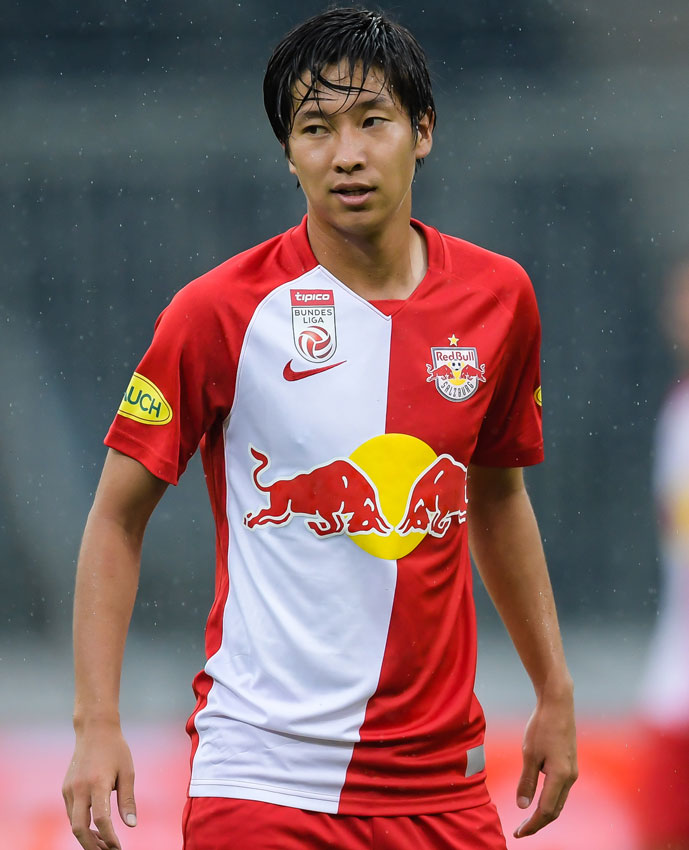 奥川雅也が所属するオーストリアのレッドブル・ザルツブルクは、今季のユニフォームに赤白半々カラーを採用。少し斜めに区切るデザインがユニークだ。