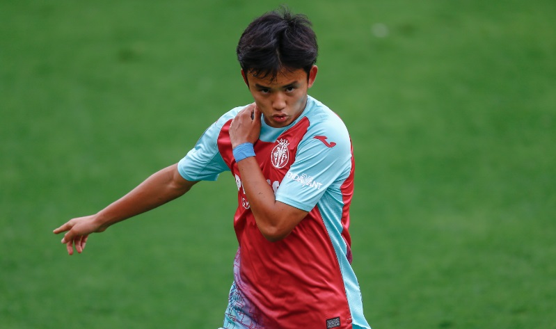 ビジャレアルに所属する日本代表MF。左手にユニフォームに合わせた色のテーピング(しないこともある)。