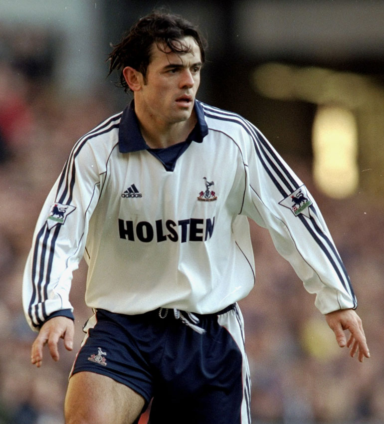 99-00シーズンから継続で使用したユニフォーム。白を基調に紺の差し色が絶妙な配色だった。「HOLSTEN」(ビールブランド)は90年代のトッテナムを象徴するスポンサーロゴマーク。