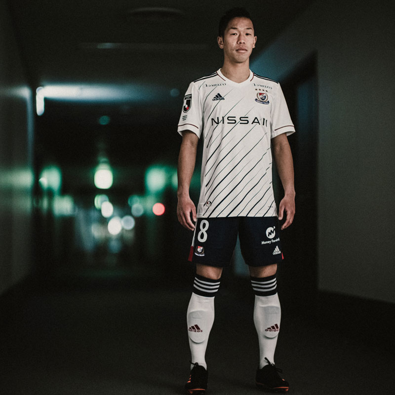 アウェイユニフォームは、選手がピッチをダイアゴナル(斜め)に走るプレースタイルを表現。同時に、ホームタウンの象徴「ベイブリッジ」の斜張を想起させ、街の人々に愛着を感じてほしいという想いを込めている。