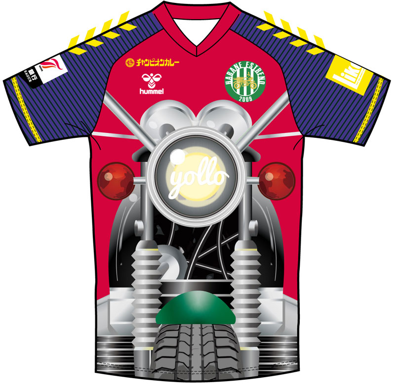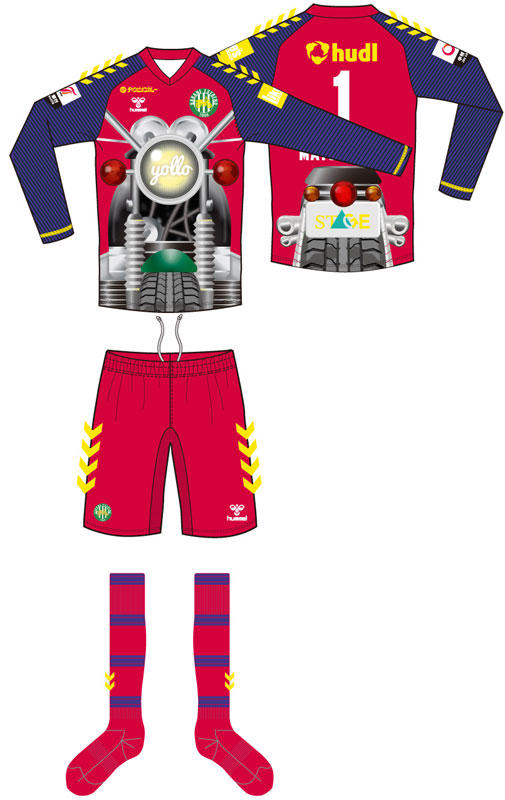 比較的オーソドックスなFP用ユニフォームに比べて、GKユニフォームは大胆なデザインが登場。愛称「バイク軍団」をイメージしてオートバイを前後に描いた、かなりインパクトのある一着だ。