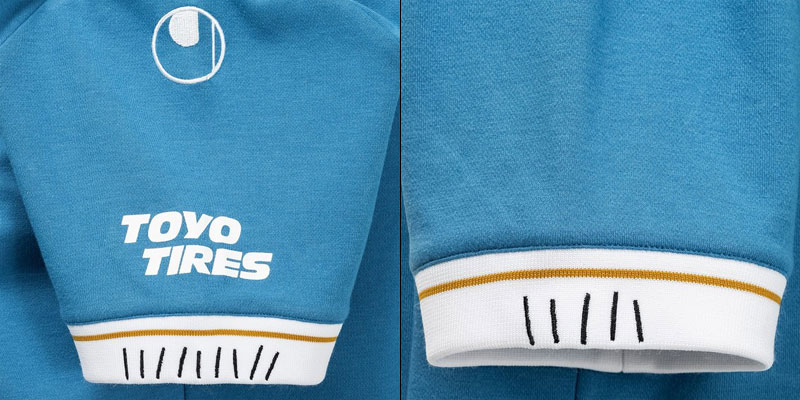 左袖に9本、右袖に5本の線は、クラブが誕生した18「95」年を示す。ちなみにこの線は、ケーベスが鉛筆で客のビールの杯数を数えるという方法をモチーフにしたもの。