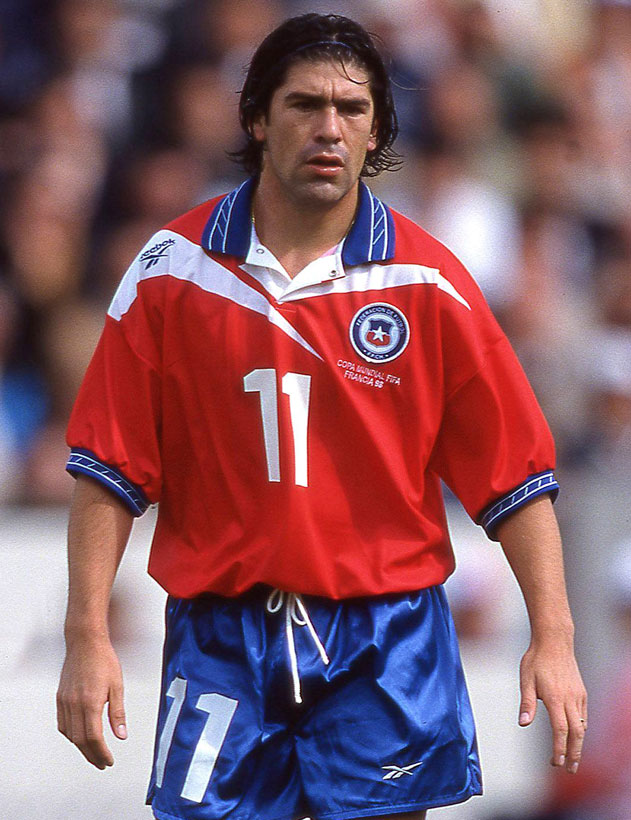 Reebokは一時期、南米の代表チームと契約していたことも。90年代後半にパートナーシップを結んでいたチリ代表は、同ブランドのユニフォームで1998年のフランスW杯に出場した。胸から上の“デカロゴ”がインパクトあるデザイン。