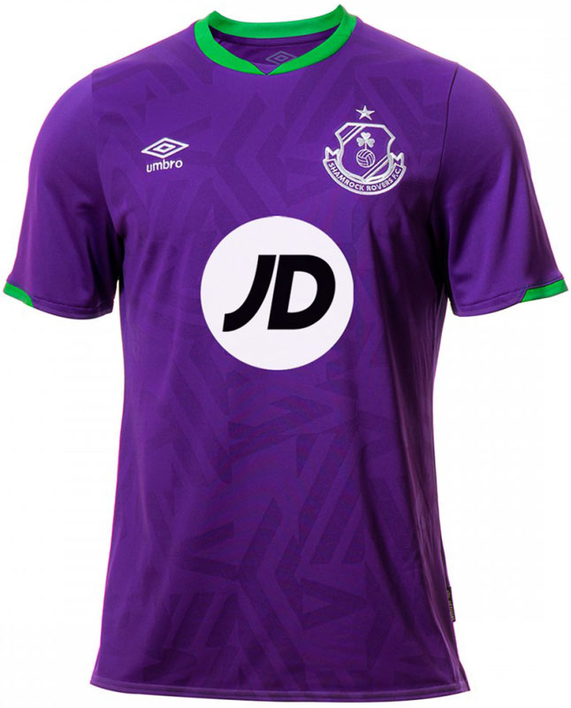 アイルランド1部の古豪シャムロック。紫を基調に大胆なグラフィックを落とし込んだユニフォームで、2020年は9季ぶりにリーグ優勝。初号機カラーのキットは縁起の良い一着となった。