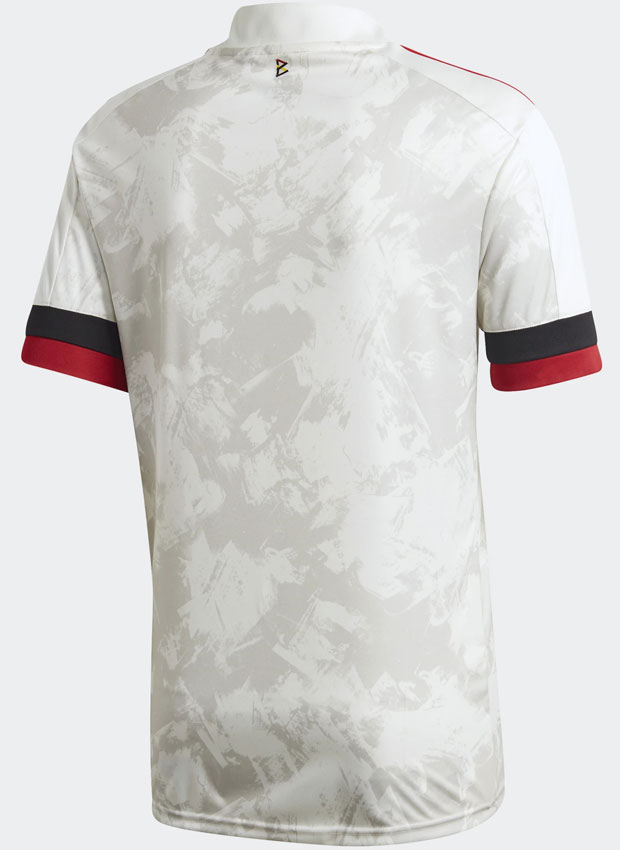 ベージュを基調に国旗色でもあるレッド、ブラックのストライプが印象的なカラー。シャツ自体はadidasのテンプレート(Condivo20)に基づいている。