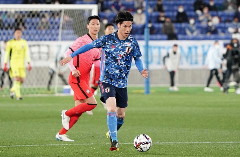 ボールの置きどころからキックの質まで、攻撃にかかわる能力は国内屈指。日韓戦の後半から出場すると、交代した鎌田大地と遜色ないプレーを見せ、コーナーキックで遠藤航のゴールをアシストした。