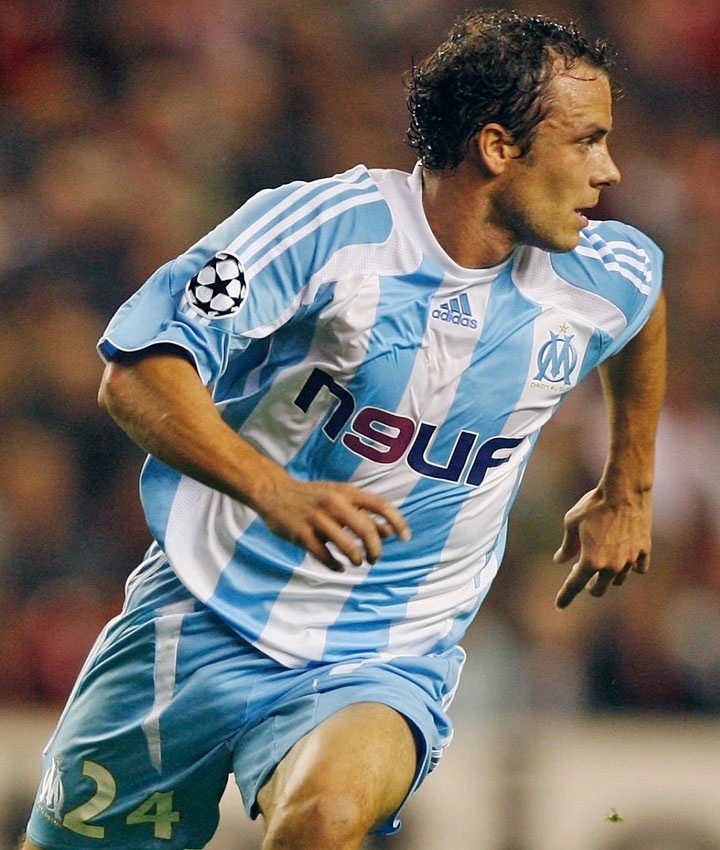 現在は酒井宏樹と長友佑都が在籍しているマルセイユ。色使いがどことなくアルゼンチン代表のようなデザインだ。当時のマルセイユは太めのストライプの他に、ピンストライプ(ペンシルボーダー)を使うこともあった。