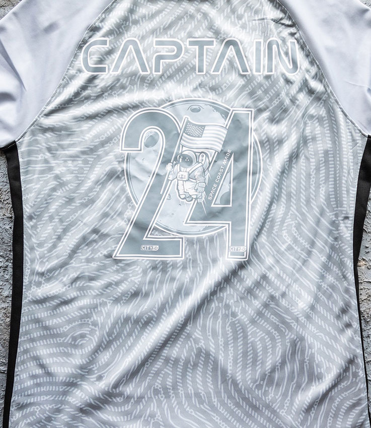 背中には“CAPTAIN”の文字と、宇宙飛行士を描いたハリスの背番号24をプリントする。マニア心をくすぐるデザインだ。