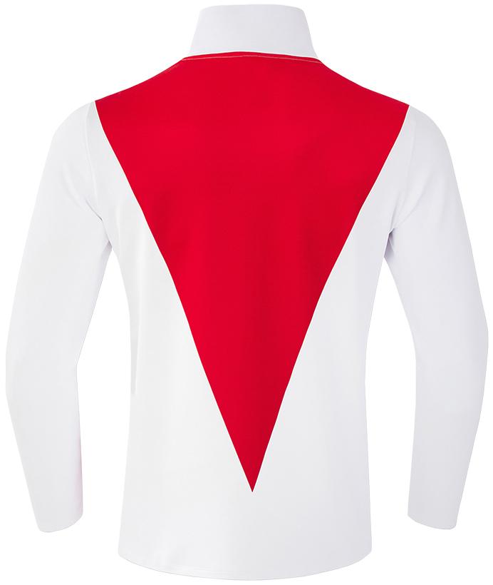 お馴染みのチームカラー(レッド、ホワイト)を基調に、4分割デザインがユニークなジャケット。選手が公式戦のピッチ入場時やメディア対応の際に着用する。右胸のメーカーロゴ下には「Mercedes-Benz Bank」のスポンサーロゴをプリント。