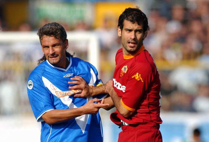 2002年にローマへとやってきたものの出場機会はわずか4試合にとどまり、臙脂色のユニフォームを着ているグアルディオラの写真は非常に貴重なものとなってしまった。