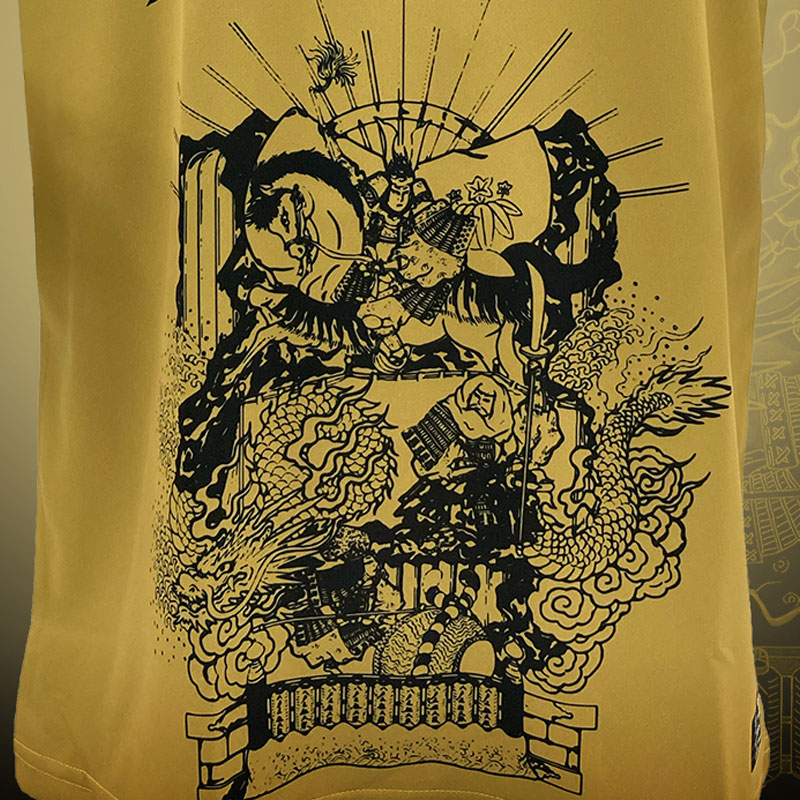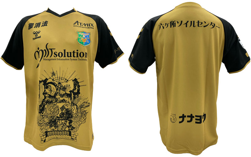 今回のデザインを担当した「はちのへ山車振興会」十一日町龍組の石橋元平氏は、「八戸に数多くの伝説がある源義経を描きました。巧みな戦術を使って勝ち進んだ義経のようにプレーし、八戸に勇気と感動を与えて欲しい」と選手にエールを送る。