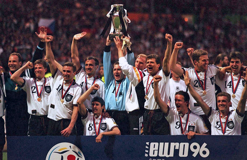 PK戦の末に地元イングランドとの準決勝を勝利し、チェコとの決勝ではビアホフのゴールデンゴールで優勝。苦しみながらも、ドイツが3度目のEURO制覇を成し遂げた。