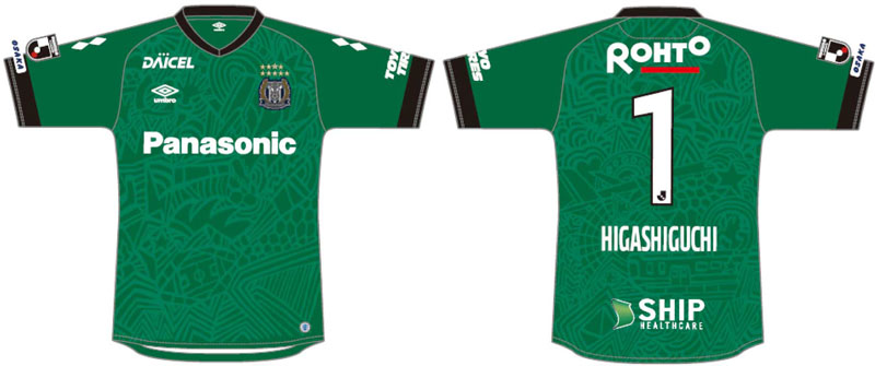 ユニフォームは「世界とのつながり」を、竹素材の画材で描いたデザイン。ガンバ大阪、そしてサッカーに関連した要素をはじめ、ガンバ大阪に関わりが深い要素がアートの中に盛り込んでいる。