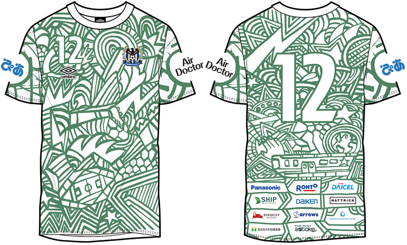 コロナ禍で「リモート〇〇」という言葉が一般的になり、直接会わずともコミュニケーションを取れるインターネット上での「つながり」が注目されてきた。デザイナーの太田さんはこの記念ユニフォームに、インターネットに関連する要素もいくつか盛り込み、全ての要素が合わさって1つのアートとして表現している。