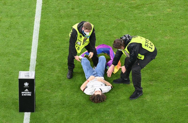 23日に行われたEURO2020のグループステージ第3節、ドイツ対ハンガリーの試合でピッチにファンが乱入する事件があった。