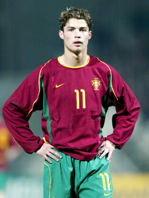 まだ11番を付けていた時代のユニフォーム。脇部分のグリーンの切れ込みが特徴的なデザインだった。写真は2003年のもので当時ロナウドは18歳。まだあどけなさが残る。