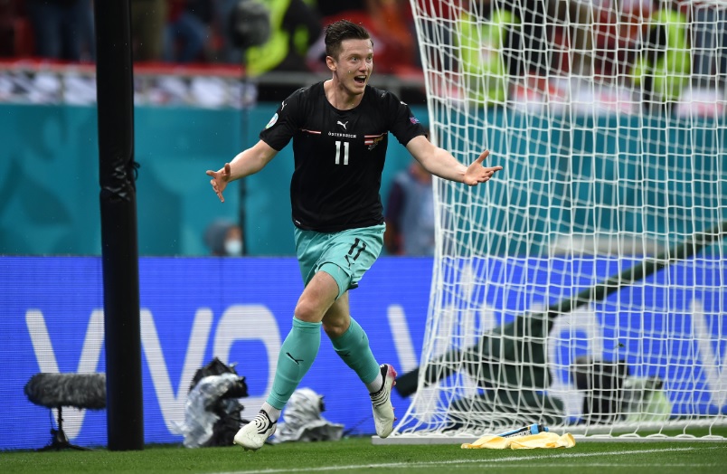 今夏のEUROでもプレーしたオーストリア代表の大型アタッカー。大柄ながらドルブルで持ち運ぶなど足元も確か。