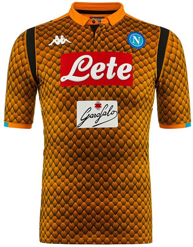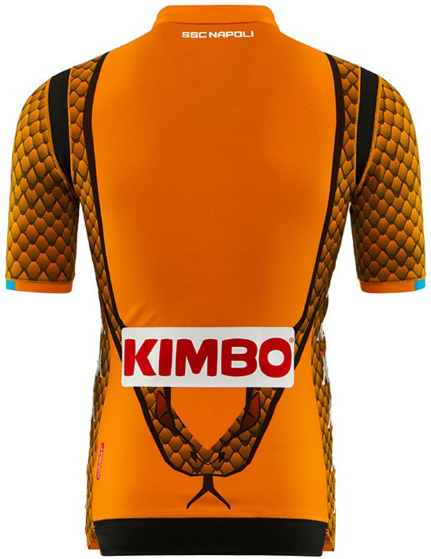 このシーズンのナポリは動物をモチーフにしたユニフォームを使用。GKキットは、前面にヘビ柄、背面にヘビそのものを描いていた。オレンジの他にグリーンのヘビ柄GKキットもある。