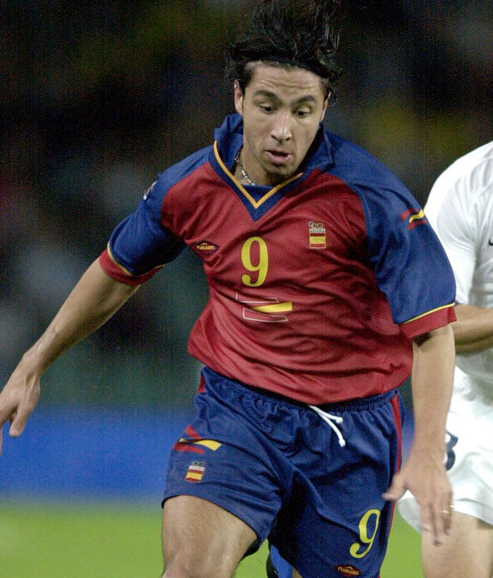 2000年のシドニー五輪で着用したホームユニフォーム。色はネイビーの占める割合が大きく、一般的なスペイン代表ユニのイメージとは雰囲気がだいぶ異なる。