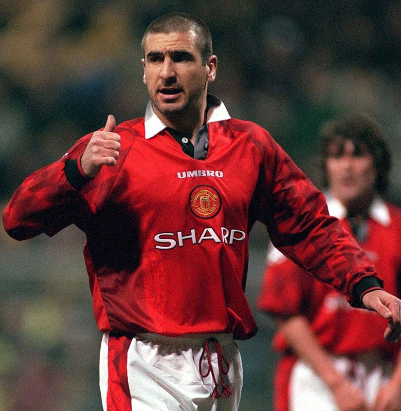 90年代のクラブを象徴するユニフォーム。エリック・カントナの襟を立てた着こなしに憧れたサッカーファンも多かった。画像では見えないが、シャツ前面下部には“THEATRE OF DREAMS”をプリントする。