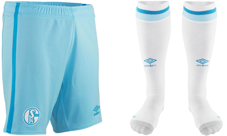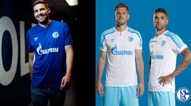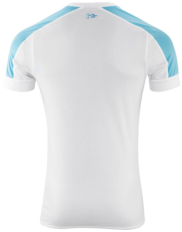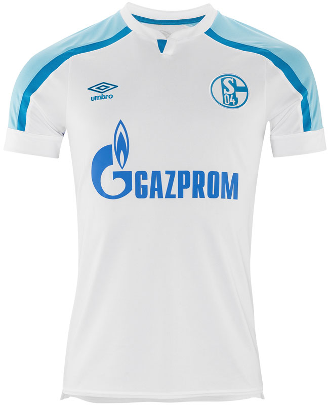 新アウェイユニフォームはホワイトを基調に、濃淡のブルーで彩るスタイル。歴代シャルケのキットでも屈指の爽やかさを誇るデザインが登場した。