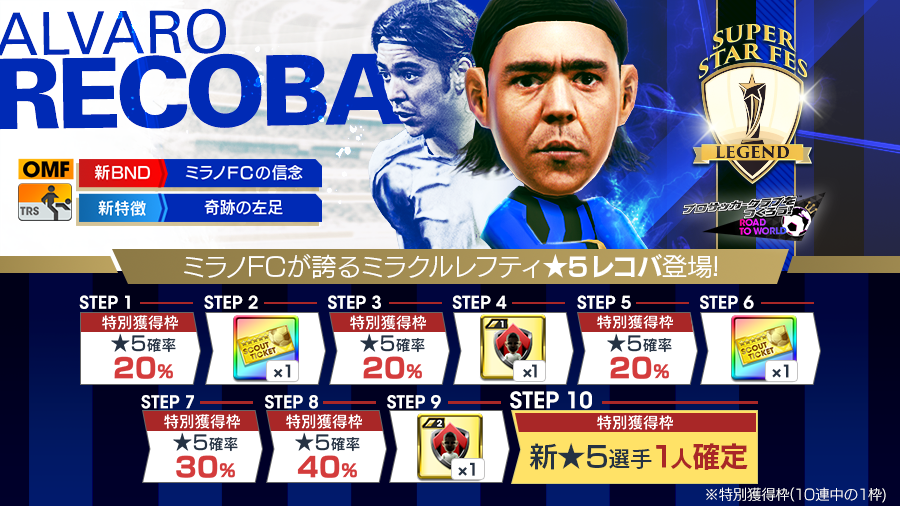 『プロサッカークラブをつくろう! ロード・トゥ・ワールド』イタリア強豪クラブのレジェンド「アルバロ・レコバ」や、現役スター選手が新★5選手として登場する“SUPER STAR FES LEGEND”を開催!